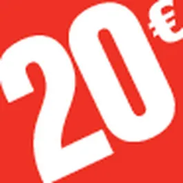 Etichetta Sconto 20 €. Etichette adesive in carta con prezzo offerta.