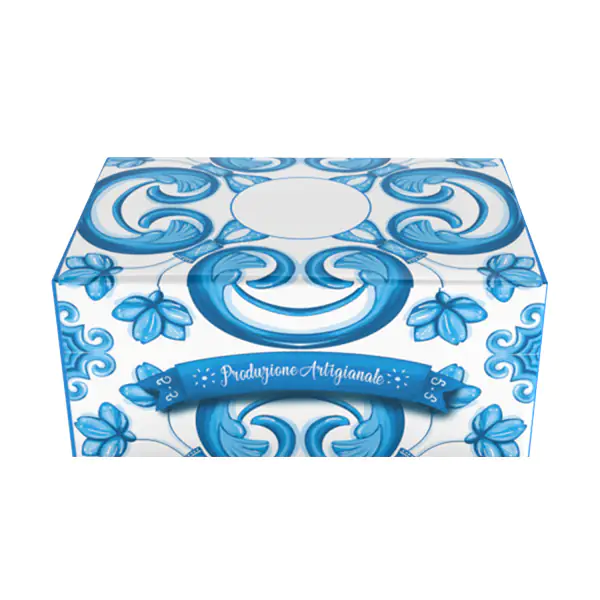 Scatola porta Colomba Maiolica Blu. Confezione da 25 scatole astuccio porta Colomba Pasquale in cartone accoppiato di alta qualità stampato con fantasia maiolica in Blu. Idonee al contatto alimentare. Sono perfette per il confezionamento veloce di Colombe di Pasqua da 750 gr / 1 Kg. Dotate di manici laterali in cordino di cotone sono perfette per contenere colombe di pasticceria.