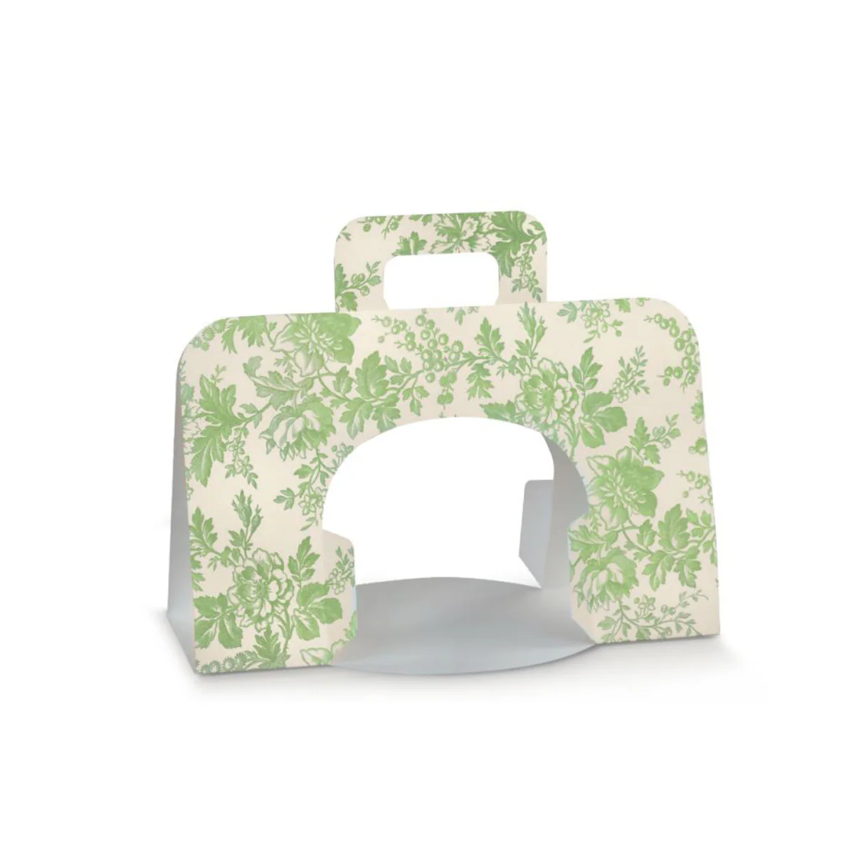 Shopper astuccio porta colomba stampato verde con manico. Astucci in cartoncino robusto completamente aperti e sagomati per confezionare e trasportare colombe di Pasqua. Astuccio automontante dotato di un pratico manico fustellato.