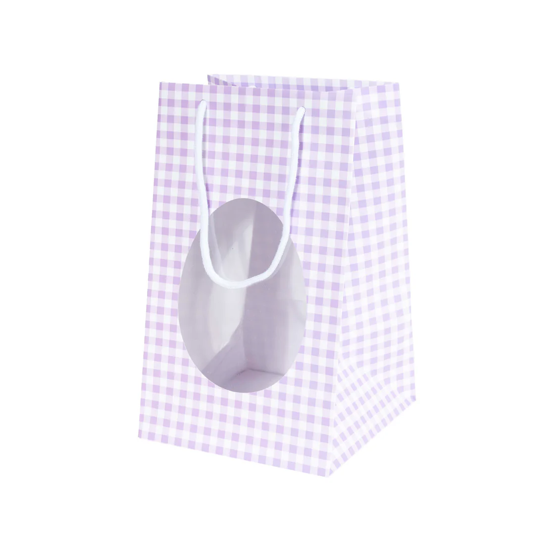 Shopper con finestra Porta Uova mix fantasie quadretti. Confezione da 12 Shopper realizzate in carta con fantasia stampata quadretti primaverili mix colori con finestra frontale in PVC a forma di Uova di Pasqua. Sono perfette per il confezionamento veloce di Uova di Pasqua dotate di base. Con manico in cordino di cotone. Bordi e fondo rinforzati per una tenuta sicura.