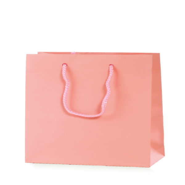 Shopper Portacolomba tinta unita Rosa. Confezione da 12 Shopper realizzate in carta colorata resistente. A fondo largo è perfetta per il confezionamento veloce di Colombe già incartate fino a 1 Kg o altri prodotti di pasticceria. Con manico in cordino di cotone tono su tono. Bordi e fondo rinforzati per una tenuta sicura.