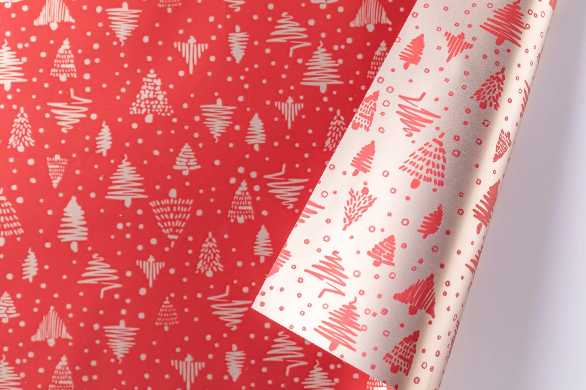 Sottovaso Natalizio Alberelli Oro e Rosso. Sottovaso in Polipropilene perlato 40my riciclabile 100% Made in Italy con bordo smerlato.