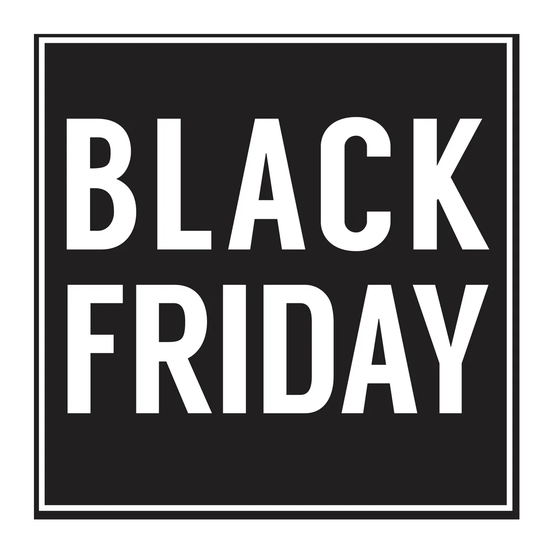 Vetrofania Black Friday. Vetrofania nera con scritta Black Friday in bianco.